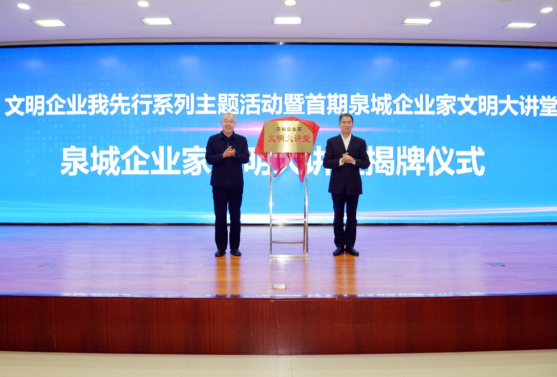 活动中,市委宣传部副部长李英涛和省社会主义学院党组书记孙传尚共同为“泉城企业家文明大讲堂”揭牌,为泉城企业家搭建一个“互学互鉴、互帮互助、互通有无、互相成就”的交流平台。市工商联企业家协会有关负责人发布了“文明企业我先行”主题活动方案,全国文明单位代表、山东省人民药业有限公司分管负责人宣读“文明企业我先行”倡议书,山东大学品牌与传播研究所所长、山东大学企业文化研究中心主任,博士生导师王德胜教授,以《文明企业 文化先行》为题进行首场讲座;齐鲁制药集团有限公司、济南轨道交通集团有限公司、济南金控国际融资租赁有限公司等进行了企业文化优秀案例分享。