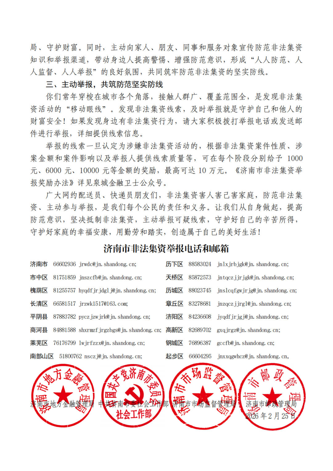 济南市非法集资举报电话和邮箱