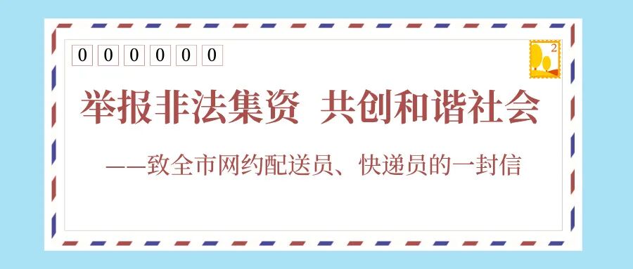 广大网约配送员、快递员朋友们,非法集资害人害己害家庭,防范非法集资、主动参与举报,是我们每个公民的责任和义务。让我们从自身做起,提高防范意识,坚决抵制非法集资,主动举报可疑线索,守护好自己的辛苦所得,守护好家庭的幸福安康,用勤劳和踏实,创造属于自己的美好生活!