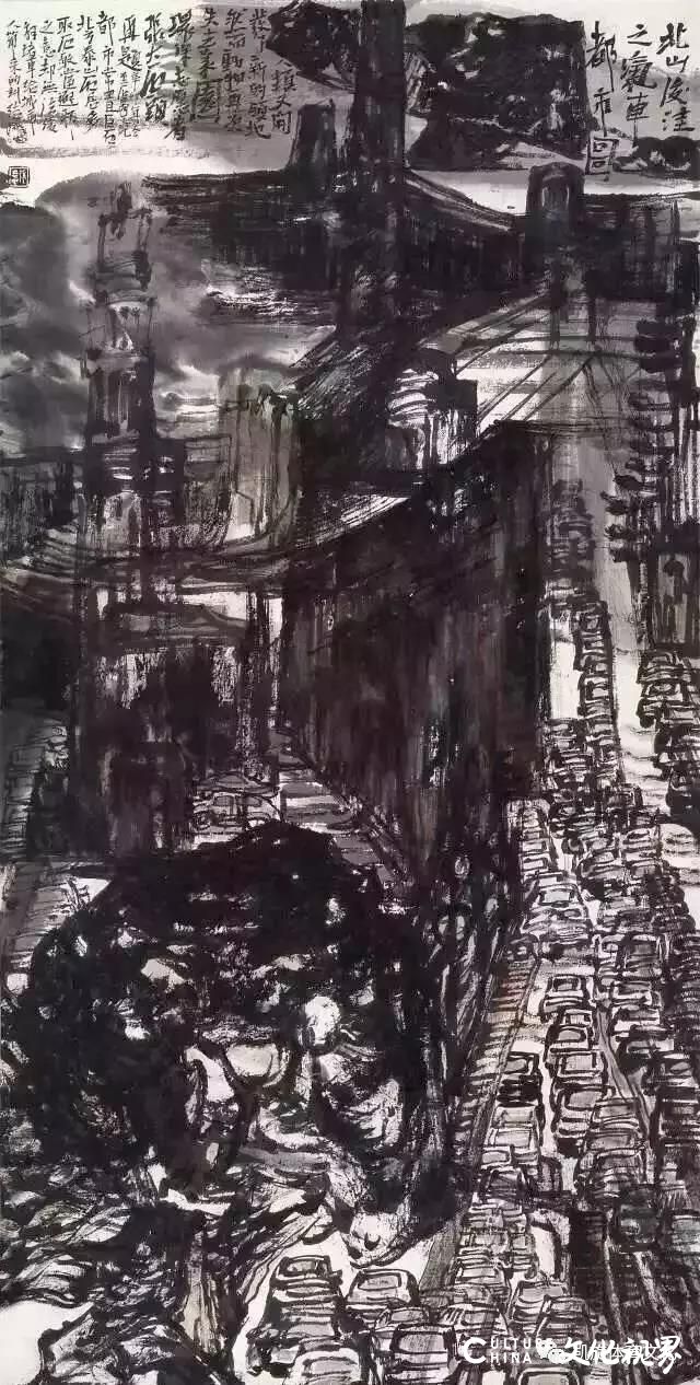 张志民作品|《北山后洼之汽车都市图》 作品规格|138 x 69.5cm 创作时间|2011年 (大卉卉)