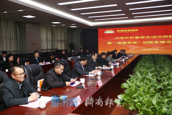14:15 济南“智汇泉城”市民智库代表与能源集团领导将展开座谈会议,同时,今天还将在这里举行“温暖泉城”供暖直播活动启动仪式。
