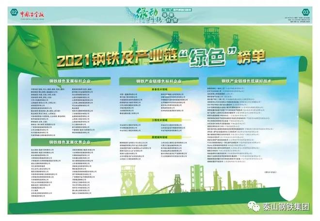 近日,由中国冶金报社组织的2021“寻找最美绿色钢城”评选结果揭晓。其中,泰山钢铁集团获评为“绿色发展标杆企业”。