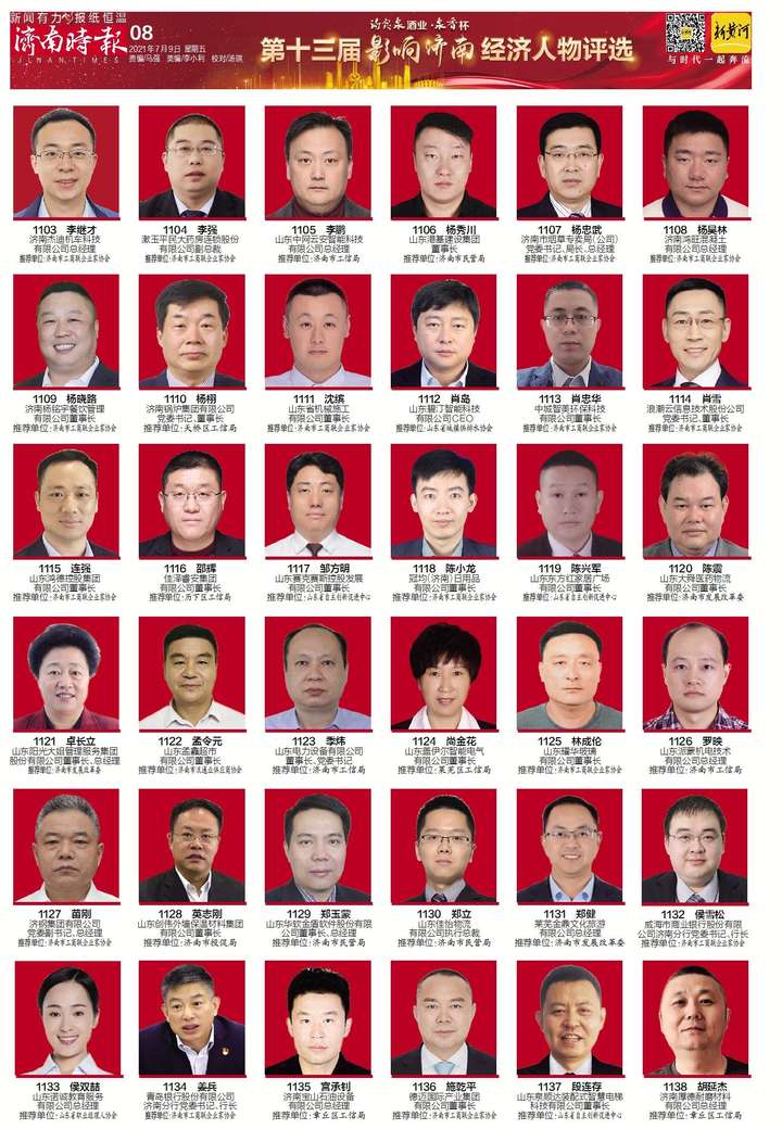 经过前期推荐报名,此次评选报名人数200余人,经过组委会审核后,确定候选人185人,涉及“五个济南”打造和十大千亿级产业发展的若干核心企业的负责人,以及互联网、新能源、新基建等若干新兴行业和领域的领军人物。