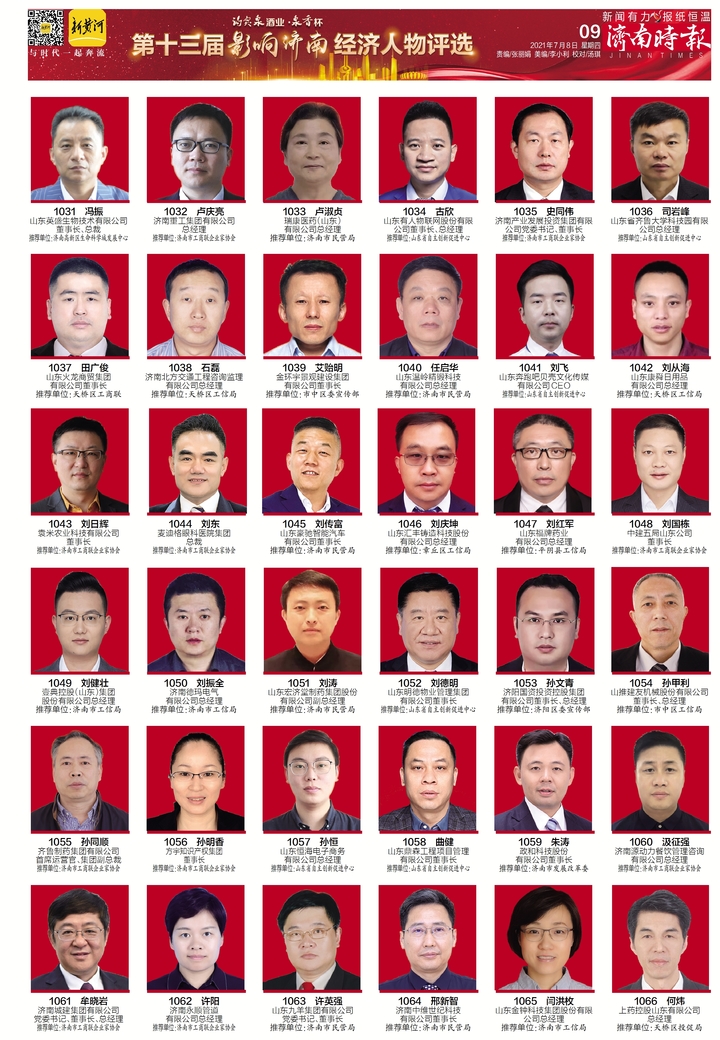 影响济南”年度经济人物评选由济南市委、市政府主导,济南日报报业集团主办,今年已是第13届。成功举办12年来,已相继推出了涵盖经济领域各行各业的432名优秀企业家,在泉城济南营造了良好的尊重企业、尊重企业家的氛围,提振了企业的发展信心,也提升了企业家的美誉度,对“双招双引”起到了良好的推进作用,已成为济南市最具影响力的评选活动之一和全市经济发展的风向标,被公认为济南经济界的“奥斯卡”。