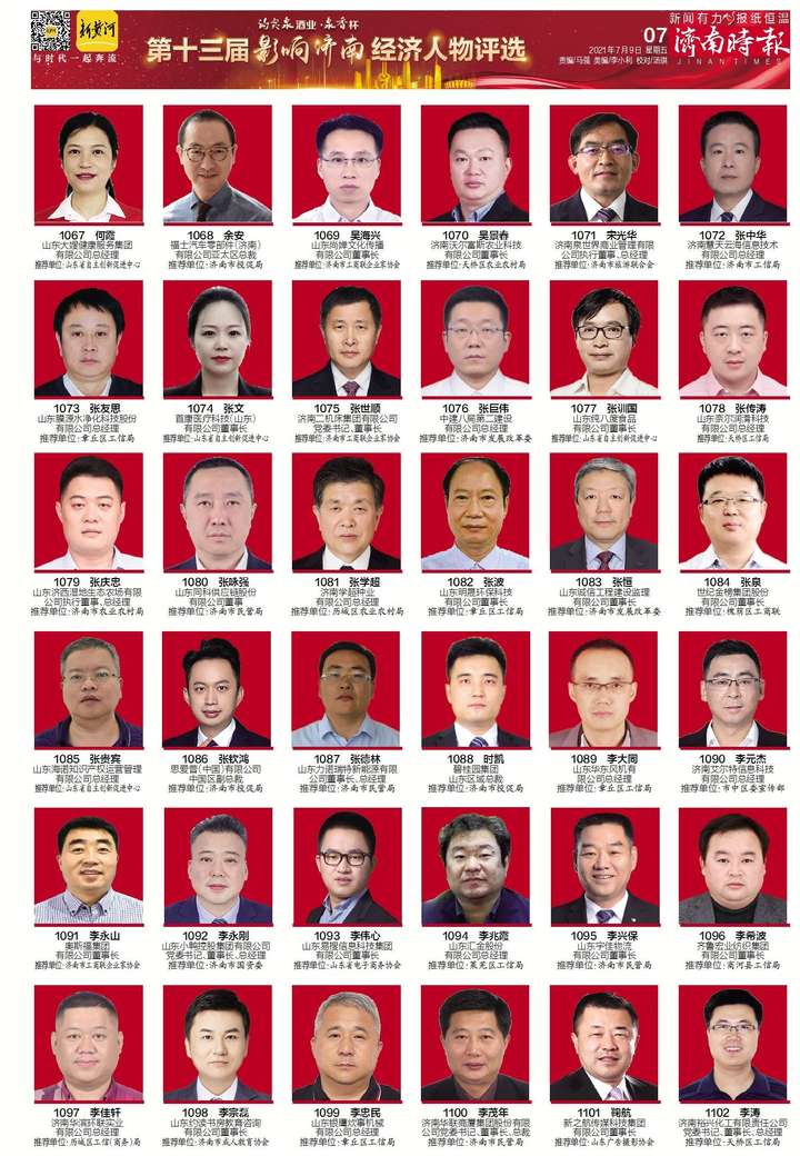 候选人名单现在《济南日报》《济南时报》进行分期公示(共分两期),同时还将在新黄河客户端、舜网、爱济南新闻客户端、济南发布客户端集中公示,7月12日启动投票(按姓氏笔画排序)。