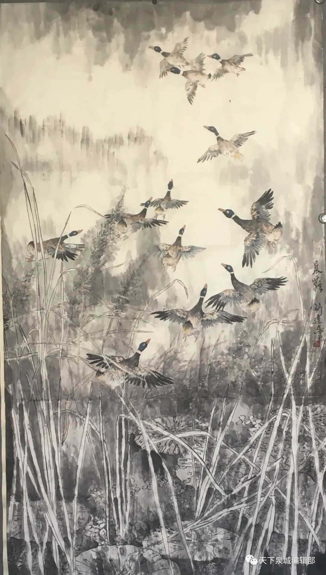 为了画好各类鸟禽,他经常流连于花鸟市场、动物园,还在家中养了很多,如山鸡、大雁、戴胜鸟等。通过对它们的细致观察,他将这些鸟禽的千姿百态铭记于心,“鸟禽之间也是有对话的,比如《争春》里的9只黄鹂鸟动作、表情都是不同的”。
