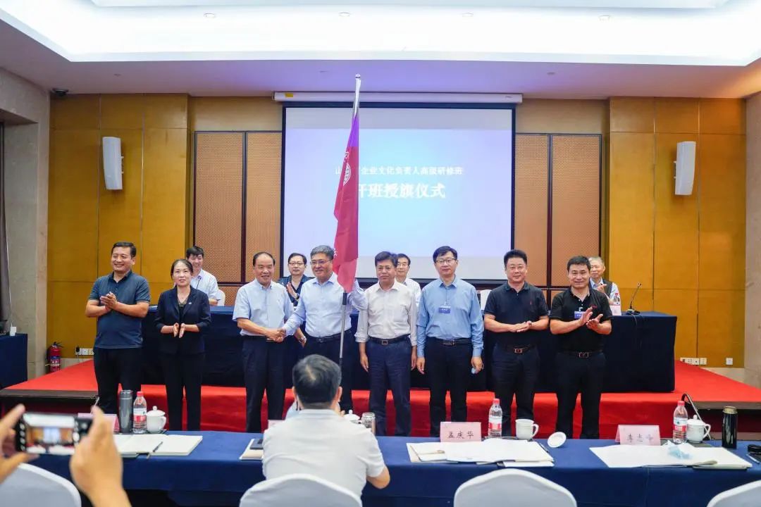 同时还进行了开班动员授旗仪式,毛继春会长代表主办方向班委授旗,山东中烟工业有限责任公司青州烟厂党委书记孟庆华当选班长并接受承载着班级荣誉的班旗。