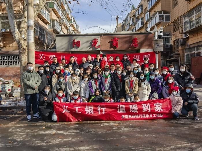 以“福象义工志愿服务队”为依托,联合济南市手拉手孤困儿童帮扶中心,在各区辖内开展困难摸排和走访慰问,春节前对辖内48名孤寡老人、孤困儿童等开展实地走访慰问,送上新春的祝福,同时发放“福象”救助金56000元。此外,还积极开展“金晖助老”“情暖夕阳红”等系列活动,联合专科医院到社区和敬老院进行义诊,组织义工为老年人开展免费义剪;捐建“希望小屋”,积极帮扶乡村留守儿童等,让留守儿童感受农商银行温暖。在山东省学雷锋志愿服务“四个100”先进典型宣传推选活动中,济南农商银行“福象”义工服务队获评2022年度山东省学雷锋志愿服务“四个100”最佳志愿服务组织。