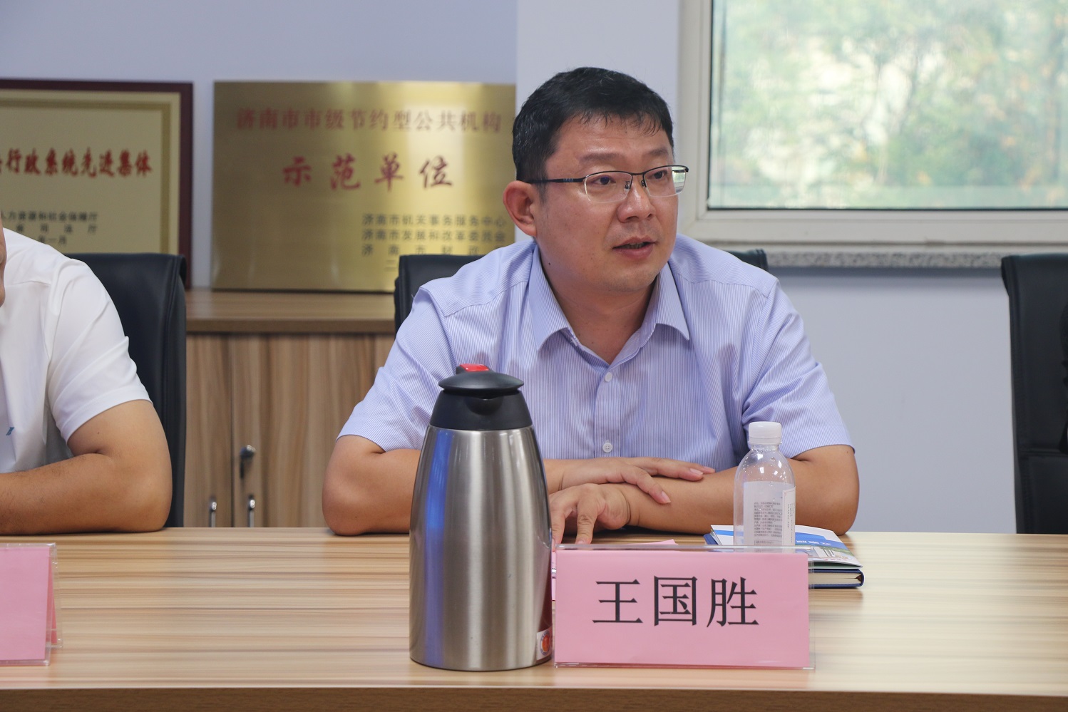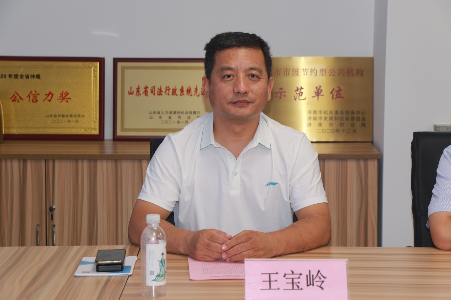 济南仲裁办主任衣光军主持座谈会,济南仲裁办党组成员、副主任朱志恒介绍了济南仲裁的机构设置情况、业务发展情况、仲裁案件质量和仲裁公信力建设情况等。