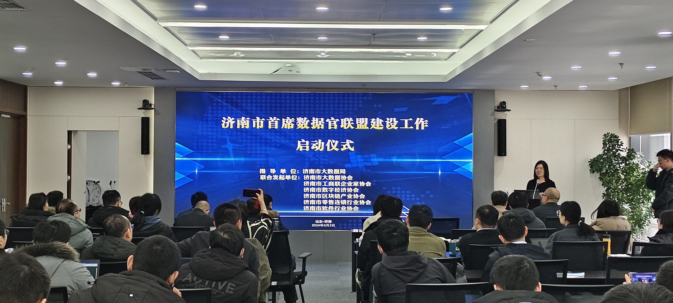 2024年3月2日,为深入贯彻落实数字济南战略,以大数据驱动引领我市数字经济高质量发展,培养支撑我市大数据高端人才队伍,在济南市数据管理知识体系提升公益培训班上举行了济南市首席数据官联盟建设工作启动仪式。参加培训的全市80多名数据官代表参加了会议,会议由山东省大数据协会秘书长臧丽娟主持。