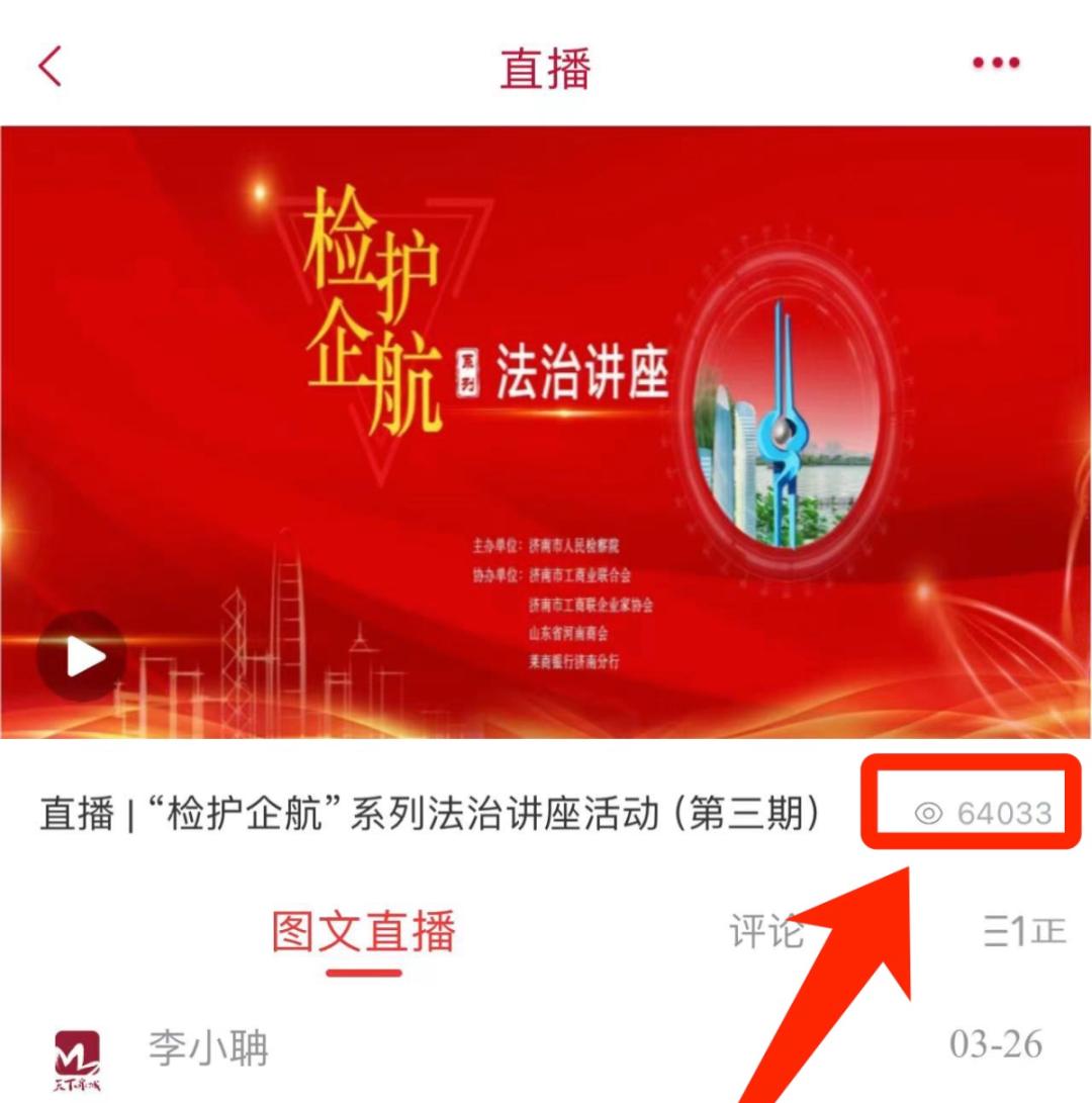 济南检察公众号(视频号)对本次讲座进行了全程视频直播,也是开通以来的首次视频直播,除公众号(视频号)外,市检察院官方抖音、微博,天下泉城客户端等平台也进行了同步直播。
