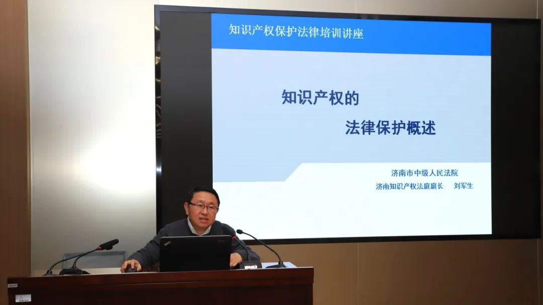 此次讲座,邀请济南市中级人民法院知识产权法庭刘军生庭长以《知识产权的法律保护概述》为题进行授课,对知识产权的范围、特征、救济途径、司法政策等8个方面进行了系统阐释;邀请市检察院第四检察部郭承志副主任作了题为《强化检察履职 推进知识产权司法保护》的讲座,结合案例生动讲解了常见罪名的法律适用和立案标准、知识产权犯罪的特点及危害,并介绍了检察机关知识产权履职情况和知识产权司法保护的具体举措。