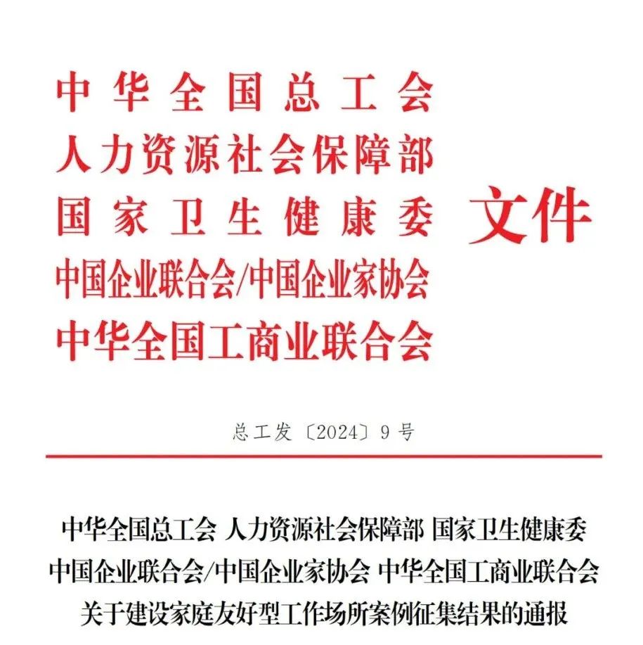 为鼓励用人单位制定有利于职工平衡工作和家庭关系的措施, 帮助职工平衡工作和家庭责任 , 推动建设家庭友好型工作场所 , 构建和谐稳定的劳动关系 , 中华全国总工会 、人力资源社会保障部 、国家卫生健康委 、中国企业联合会/中国企业家协会 、中华全国工商业联合会在全国范围内联合开展建设家庭友好型工作场所典型案例征集活动 , 共征集案例 175个, 经筛选和评审, 产生100个入围案例 。现对100个入围案例所在单位进行通报, 详见附件 。