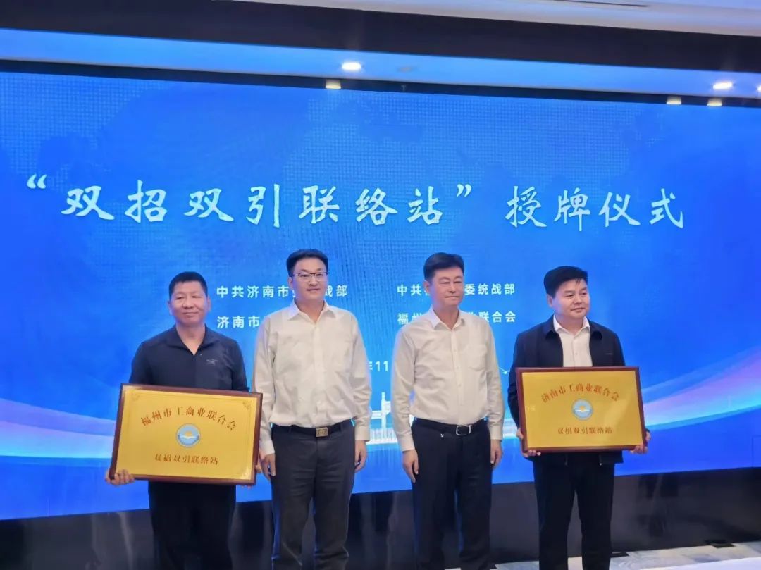 两地市领导分别向山东省福州商会、福州市山东商会颁发“双招双引联络站”牌匾