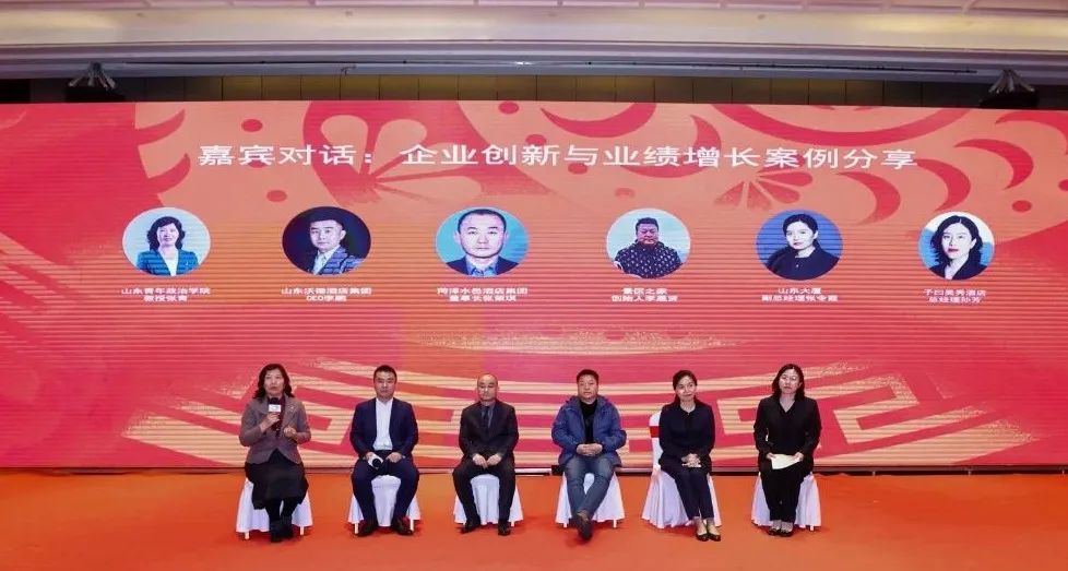 在“企业创新与业绩增长案例分享“的嘉宾对话环节,由山东青年政治学院教授张青主持,山东沃德酒店集团CEO李鹏先生,菏泽水邑酒店集团董事长张荣琪,景区之家创始人李晟贤,山东大厦副总经理张令霞,子曰美秀酒店总经理孙芳参与了对话讨论。