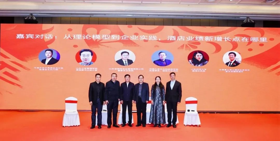 在“从理论模型到企业实践,酒店业绩新增长点在哪里”嘉宾对话环节,由中商企协文商旅企业分会轮值会长刘乃钢主持,山东大学管理学院原党委书记吉小青,山东省国控企业管理有限公司董事长王忠民,济南大学文化和旅游学院党委委员、副院长张炳文,山东师范大学教授孙凤芝,永锋置业商业酒店业务板块副总经理杨道柱参与了讨论。