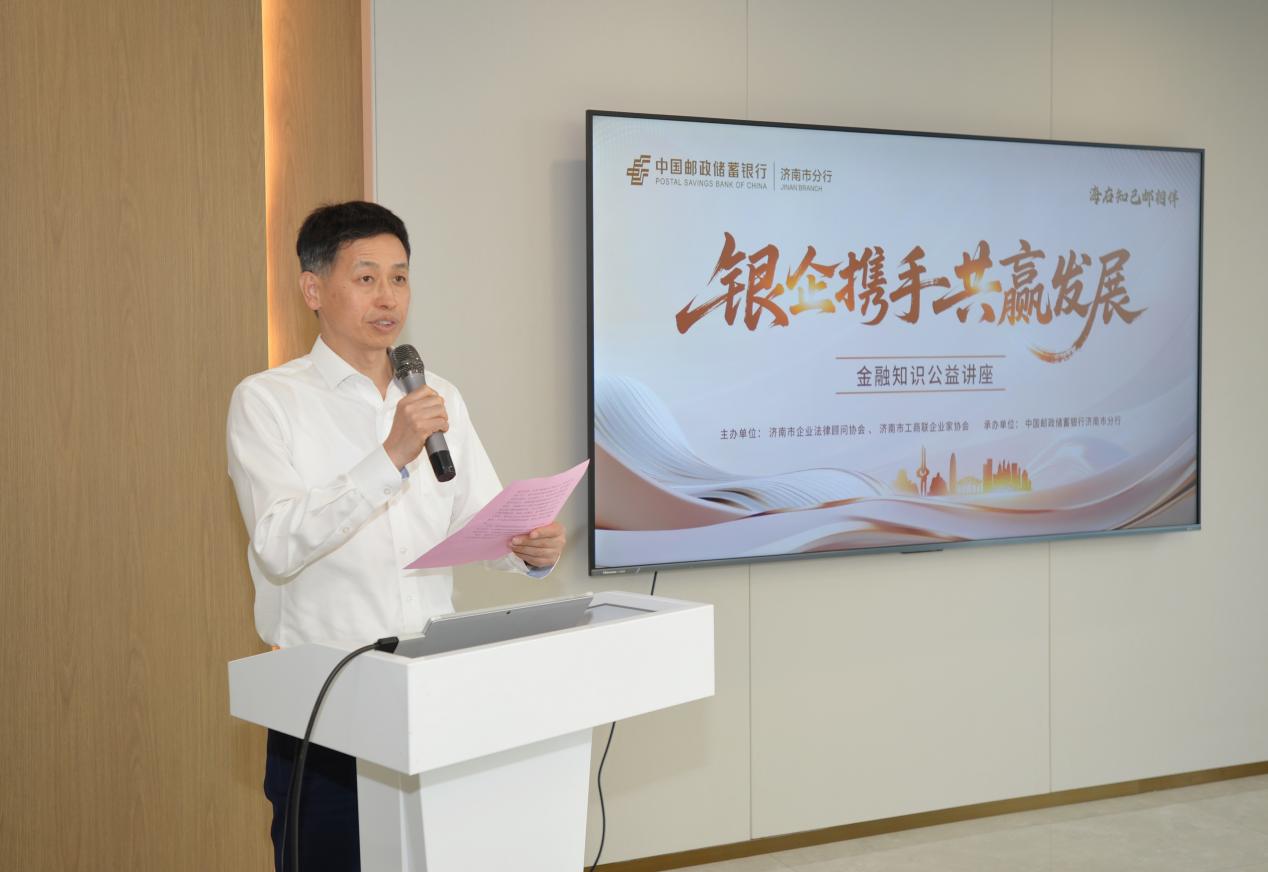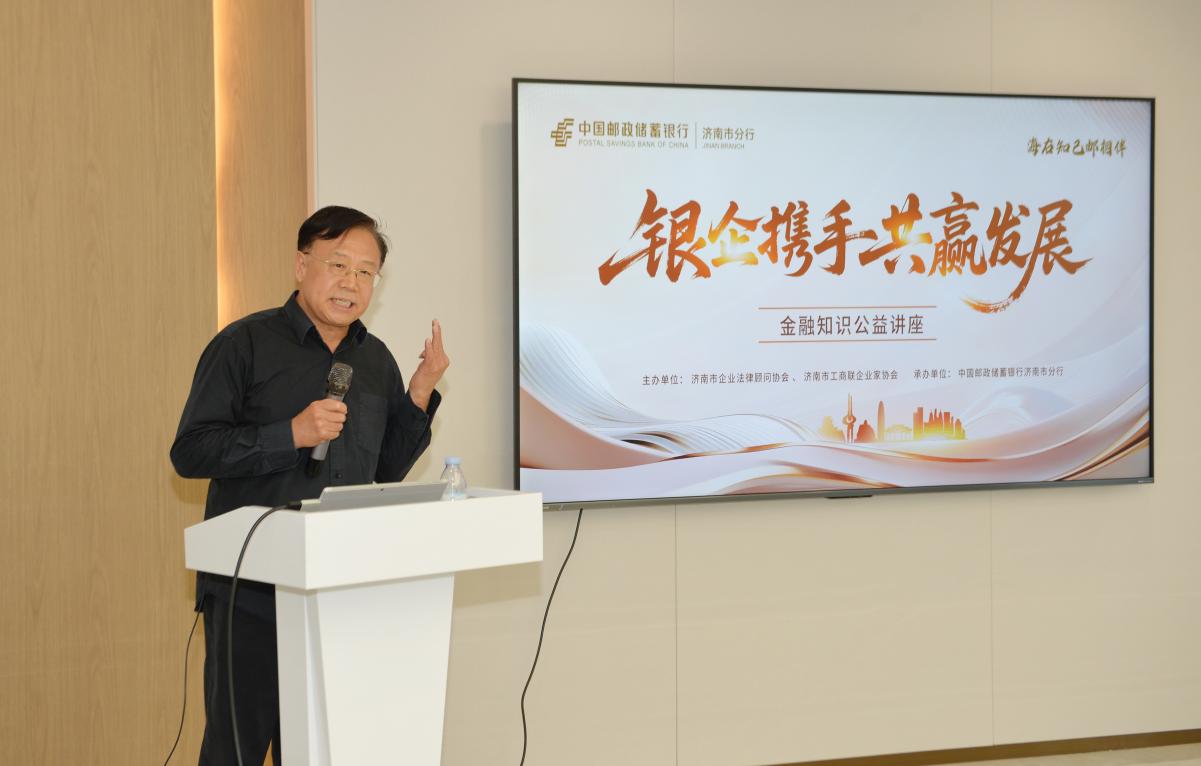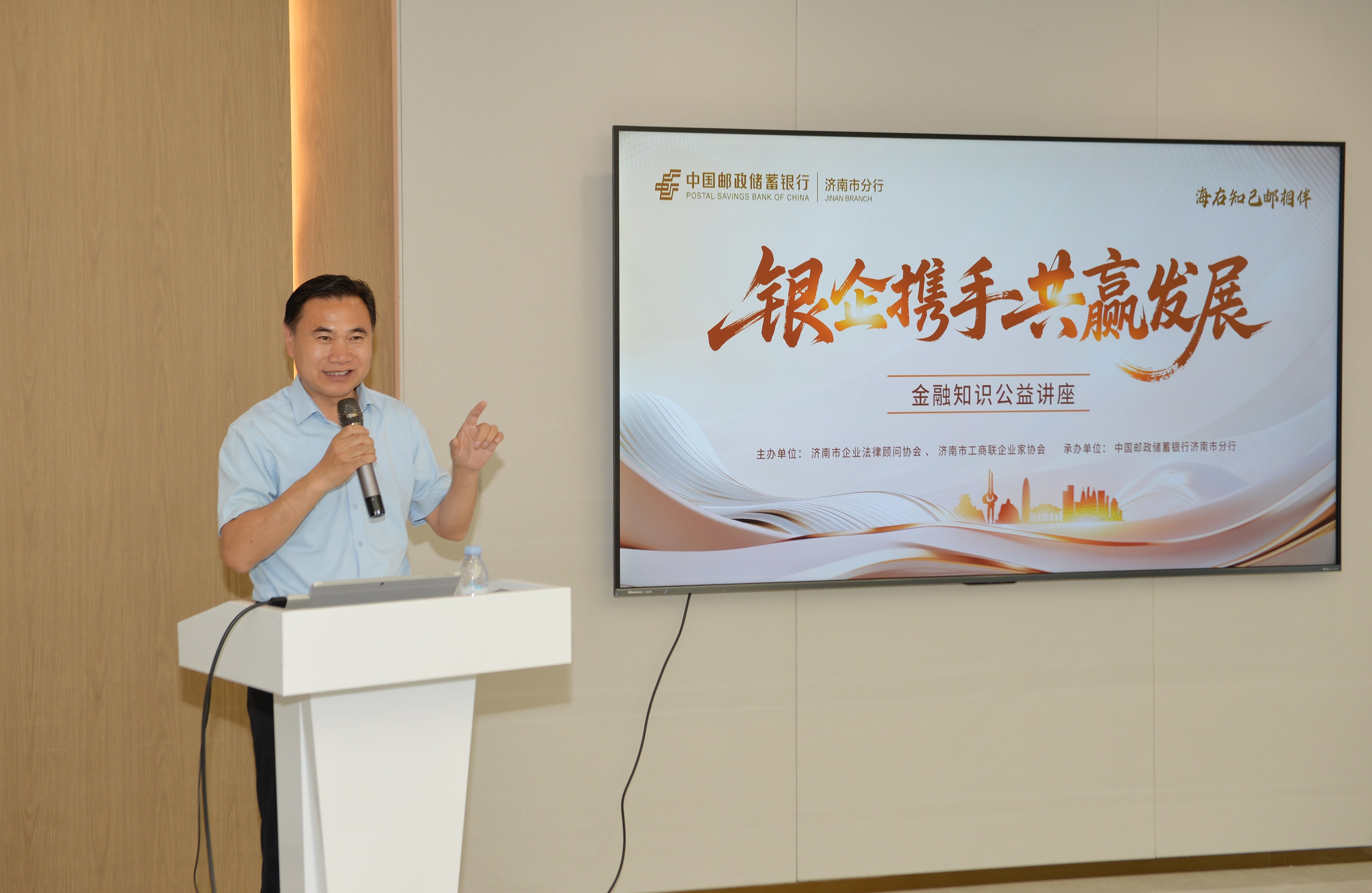 5月23日,为了提升企业对金融知识的理解和应用能力,增强企业负责人及财富管理人员的风险意识,营造和谐健康的金融环境,助力企业实现高质量发展,由济南市企业法律顾问协会、济南市工商联企业家协会主办,中国邮政储蓄银行济南市分行承办的“银企携手共赢发展”金融知识公益讲座活动成功举行。
